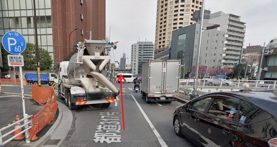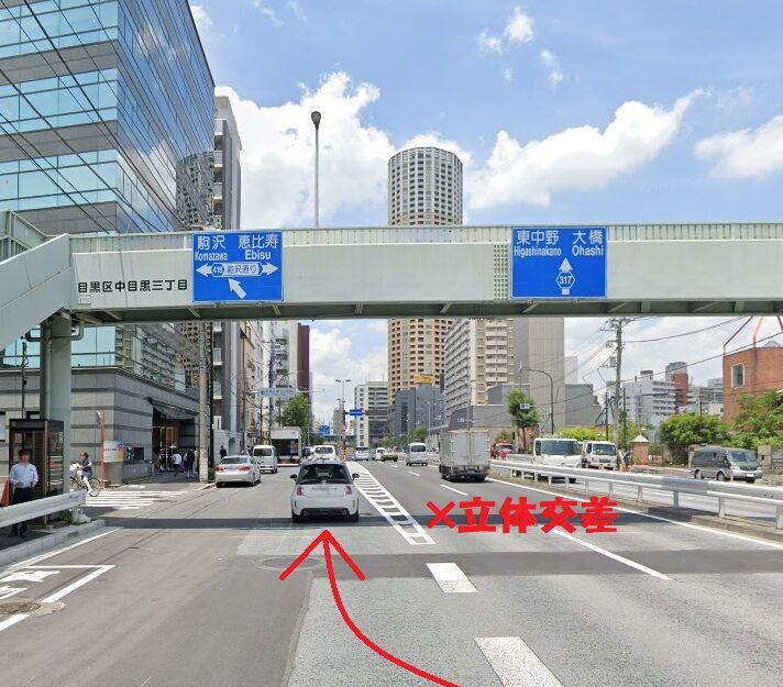 駒沢通りと交差する立体交差を下がらず左側へ