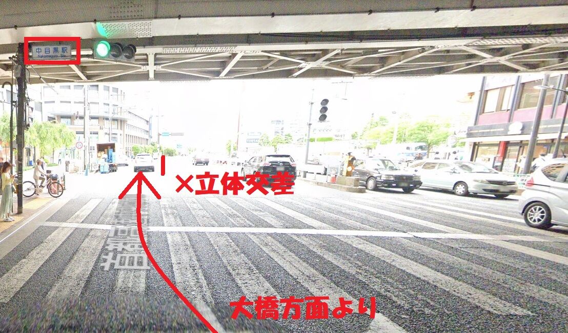 ✖立体交差に入らず左へ進行し↓↓